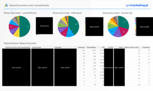 Rozkład wyświetleń, kliknięć i konwersji wg słów kluczowych (dane zanonimizowane)